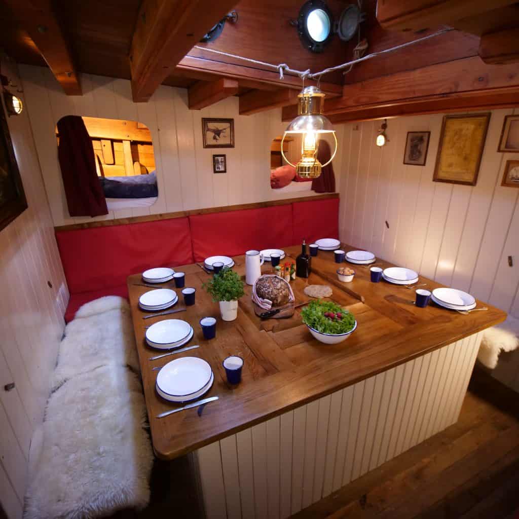 – Rebuilt the entire saloon with new bunks and a new dinner table.