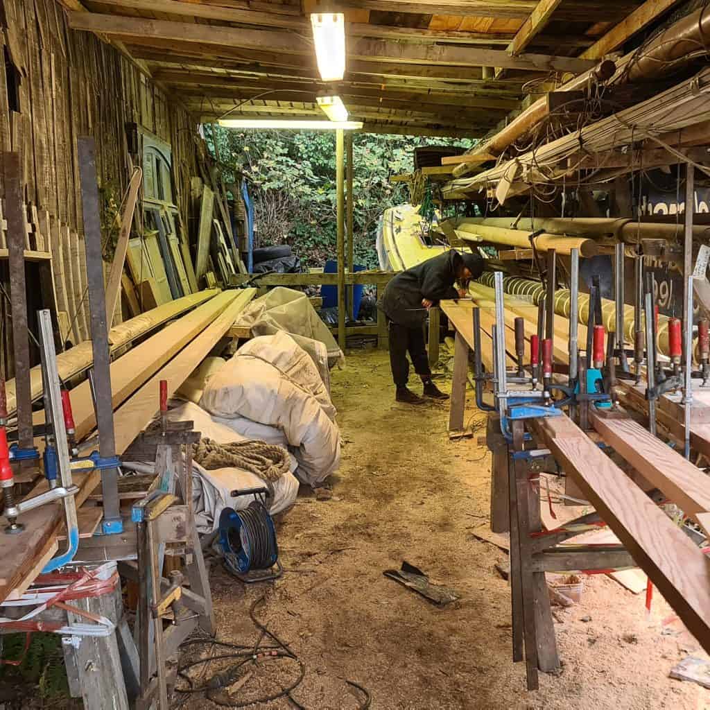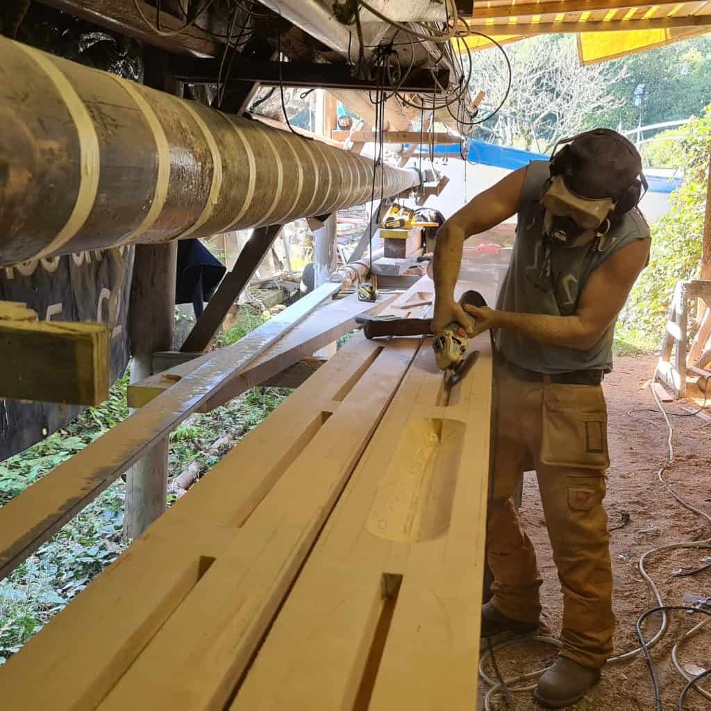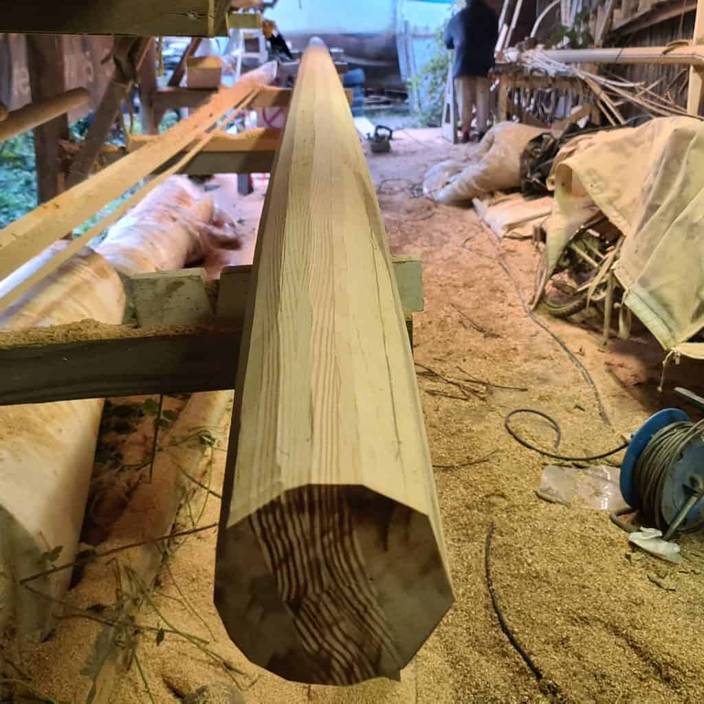 – building a new fore mast yard from Oregon Pine. We made it hollow to bring down the weight.